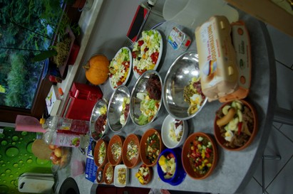 Zu Fütterungszeiten sieht unser Küchentisch dann schon einmal so aus.......